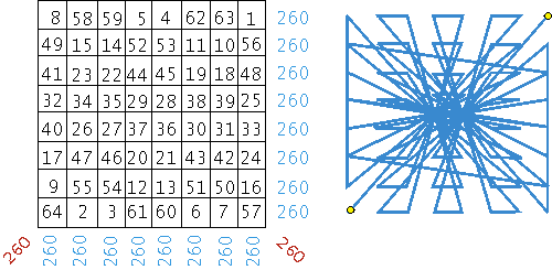 Квадратная таблица с 64 клетками (исходная - Рис.0-3) заменяется на треугольную, имеющую также 64 ячейки.